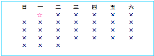 点评:在一个月内的推算日期的问题画日历表是常用的方法,只要判断出这个月的第一天就可解决.