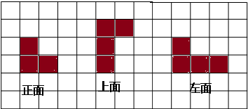 分析:观察图形可知,这个图形一共有2层,下层有4个正方体,上层有一个正方体;从正面看,有2列,左列是2个正方形,右列1个正方形;从上面看,看到的是2列,左列3个正方形,右列最上方一个正方形;从左面看,看到的是2层,下层3个正方形,上层靠左边1个正方形,由此即可画图.