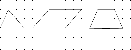 在点子图上画出一个三角形,一个平形四边形和一个梯形.