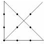 分析:本题单独考虑奇点的个数和偶点的个数是不能解决问题的,它不同于一般的一笔画,考虑到直线段如果不超出一些点,是不能画4条线段的,所以可以从右上角的点开始,沿对角线画,再向上画,再向右下画,最后向左画即可.