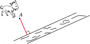 小羊想到河边喝水,请你画一条从A点到小河边最近的路.