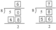 (2)由竖式可得:除数是8,余数是2,被除数是五十几;由6×8+2=50;7×8+2=58可得被除数是50或58;