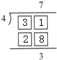 (1)由竖式可得:商是7,除数是4,余数是3,由7×4+3=31,可得被除数是31;
