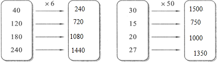 发现:两数相乘,一个因数不变,另一个因数扩大或缩小几倍(0除外),积就扩大或缩小几倍.