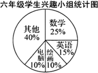 分析:(1)其他兴趣小组可能包括几个兴趣小组,占所有兴趣小组人数的40%,这里面的兴趣小组可能有的超过25%,也可能都不超过25%,因此,根据这个扇形统计图不能判断哪个兴趣小组人数最多.