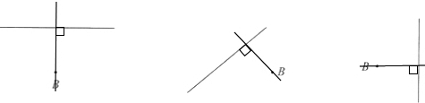 用三角板的一条直角边的已知直线重合,沿重合的直线平移三角板,使三角板的另一条直角边和B点重合,过B沿直角边向已知直线画直线即是已知直线的垂线.