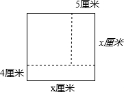 分析:如图所示:第一次剪,剪掉的面积是4乘边长,第二次剪,剪掉的面积是边长减4后乘5,设原来正方形的边长为x厘米,根据正方形和长方形的面积公式,先求出边长,进而求出它的面积.