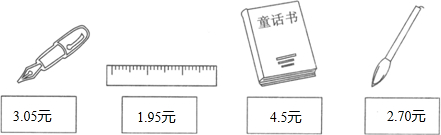 所以童话书的价格是4.5元,尺子的价格是1.95元,钢笔的价格是3.05元,毛笔的价格是2.70元;
