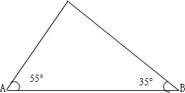 以A为顶点,画一个55°的角,以B为顶点画一个35°的角,组成一个三角形.