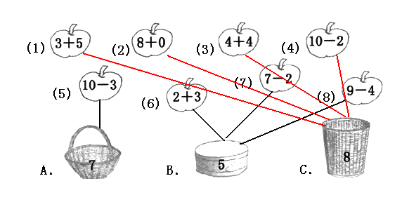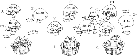 先计算,再连一连.下面的萝卜应该放在哪个篮子里?