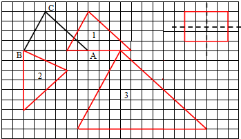 (1)把图①中三个顶点分别向右平移4格,在顺次连接即可得出平移后的图形1;