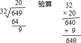 (1)649÷32=20…9;