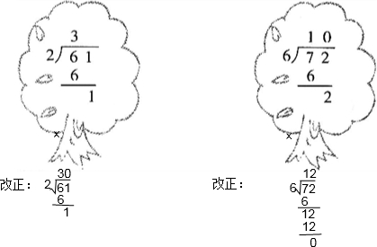 根据一位数除两位数的计算法则,61÷2,被除数十位上商3,个位上1除以2不够商1应该商0,所以61÷2=30…1;72÷6,被除数十位上商1余数是1个10,10和个位上的2合起来,个位上应该商2,所以72÷6=12;据此解答.