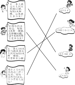 2、沿直线上栽树,栽树的棵数=间隔数-1(两端都不栽),植树的棵数=间隔数+1(两端都栽),植树的棵数=间隔数(只栽一端).逐题分析列出算式后再连线即可.
