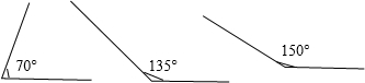 用量角器或三角尺画出70°、135°、150°的角.