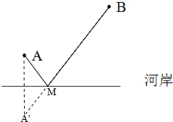 如图,从A点到M点取水,然后沿MB送到B村的路程最短,最节省时间;