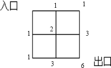 解答:解:由上图可知从入口到出口的最短路线有6条,即:①入口→A→B→C→出口;②入口→A→D→C→出口;
