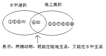 水中游的的序号是( ),地上跑的序号是( ),两种都包含的表示的意思是( )