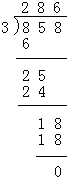 858÷3=286;