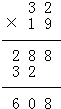 解答:解:32×19=608;