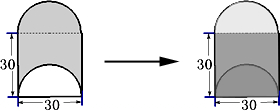 分析:(1)如图用割补法,把图中上部的半圆割下补在下部的空白半圆处,正好是一个边长为30厘米的正方形,据此可求出阴影部分的面积.