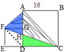 把△AFH用△CDH代换,这样原图中阴影部分的面积就是大正方形面积的一半,