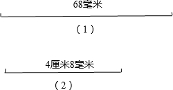 (1)68毫米=6.8厘米,作图如下:(2)4厘米8毫米=4.8厘米,作图如下: