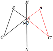 分析:根据轴对称图形的特征,对称点到对称轴的距离相等,对称点的连线垂直于对称轴,在对称轴MN的右边画出三角形的对称点(A与它的对称点A′重合,在MN上),再首尾连结各点即可作出三角形ABC的轴对称图形A′B′C′.