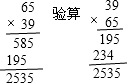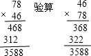 点评:此题考查了整数乘法的计算方法及计算能力,注意用交换进行验算.