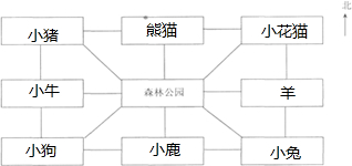 (1)熊猫住在森林公园的北面,小鹿住在森林公园的南面.