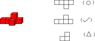 指出从正面、上面和右面看到的形状.(正面画“√”,上面画“○”,右面画“△”)