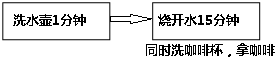 妈妈给客人烧水冲咖啡,洗水壶要用1分钟,烧开水要用15分钟,洗咖啡杯要2分钟,拿咖啡要用1分钟.为了使客人早点喝上咖啡,最合理的安排要多少时间?