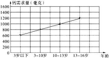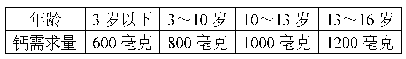 | 钙需求量 | 600毫克 | 800毫克 | 1000毫克 | 1200毫克 |