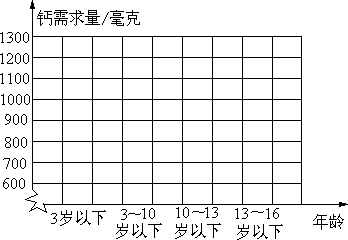 钙是人体必需的微量元素,下表是各年龄段每个人每天所需的钙量,根据这张表完成折线统计图.