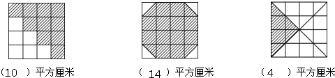 下面的每个小方格都表示1平方厘米.请把每个图形中涂色部分的面积填在括号里.