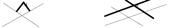 在下左图中过A点分别画两条直线的垂线,在下右图中过B点分别画两条直线的平行线。