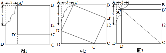 如图2所示,使AA′=BB′=CC′=DD′=3(厘米),则正方形A′B′C′D′的面积为