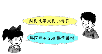 由“梨树比苹果树少得多”可知:梨树的棵数一定比230棵少,而且是少得多, 238棵比230棵多,不符合题意;224棵比230棵少一些,也不符合题意;只有160棵比230棵少,而且是少得多,符合题意,选C. |