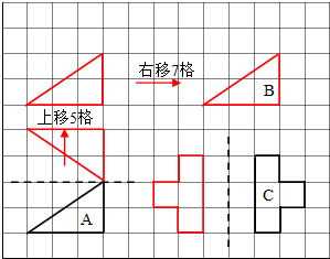 (1)将图形A向上平移5格,再向右平移7格,得到图形B.