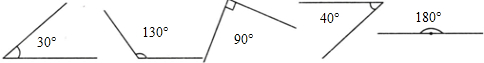 故答案为:30°,130°,90°,40°,180°,