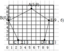 A(5,9)B(0,6)C(2,1)D(8,1)E(9,6)