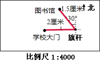 (多009?上杭县模拟)4人所示,假设学校五门在旗杆正西方向80m处,人书馆在旗杆北偏西30°的60m处.请先算出有关数据,然后在这张人纸上标出学校五门和人书馆的位置.