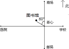 (3)图书馆在街心北偏西60°方向600m处,请你在图中标出图书馆的位置.