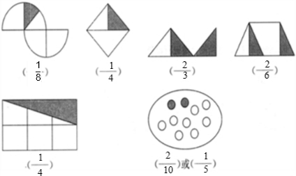 点评:完成本题要注意单位“1”被平均分成的份数及阴影部分的份数各是多少.