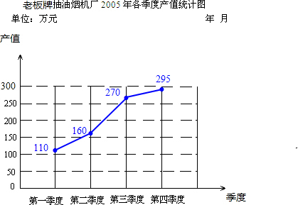 分析:根据统计表所提供的数据,用纵轴表示产值(单位/万元),每格表示50万元,横轴表示季度,即可绘制出折线统计图.