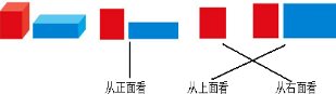 从上面看到的图形是:左边一个长方形,右面1个宽较大的长方形;