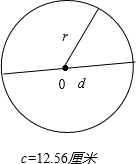 画一个周长为12.56厘米的圆.并用字母标出圆心,半径和直径.