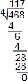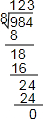 | 574÷6= | 729÷9= | 468÷4= | 984÷8= |