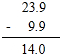 ①23.9-9.9=14;