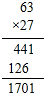 ③63×27=1701;
